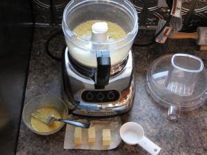I don’t know about anyone else, but the only place I could find almond paste was at the Bulk Barn. I don’t know if their stock is dried out, or if it’s just the way almond paste is, but I couldn’t really get it ground with the sugar to a state I would call “fine”. Little pellets of almond paste was as close as I could get.