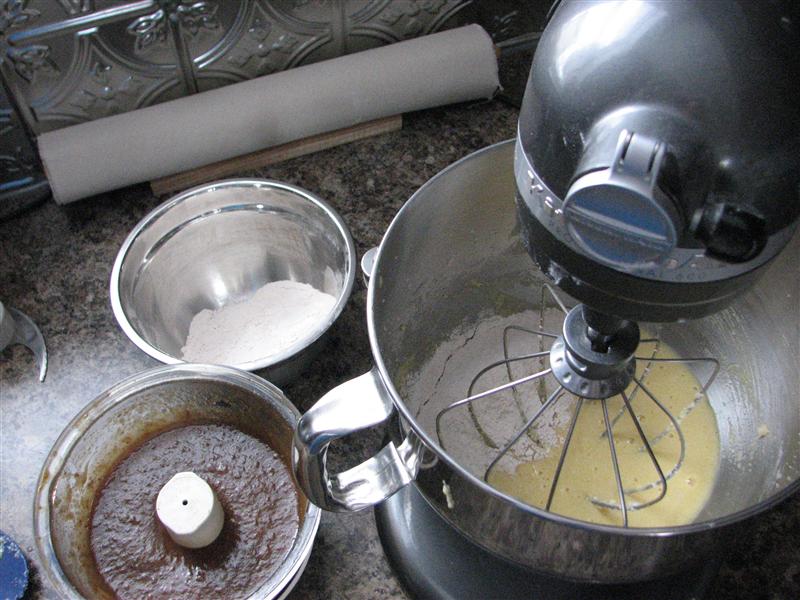 I honestly found the stand mixer to be more of an annoyance than a help after the first couple of additions, because the flour mixture would get caught in the middle of the whisk attachment, and never actually mix into the rest of the batter, so I ended up doing the final couple of mixing steps by folding them in by hand with a spatula.