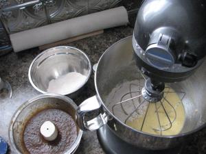 Start by bringing the beer to a boil, which smells terrible, no matter how tasty the beer is when it’s cold. Pour it over the dates. I mis-weighed the dates at the Bulk Barn, so I didn’t have quite enough to make 170g, so I added a couple of apricots and a few raisins. I figured it couldn’t hurt. After the mixture cools, puree it in the food processor.