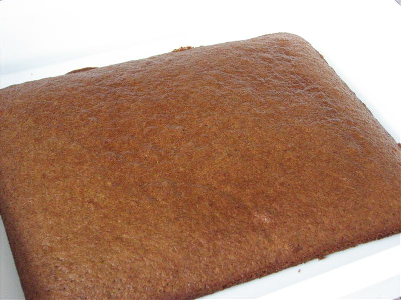 I think this is the first sheet cake we’ve baked from Rose’s Heavenly Cakes, and I discovered that what I thought was a 9×13″ pan is actually about 10×13, so my cake came out a little thinner than it should have. It took about 25 minutes total to bake.