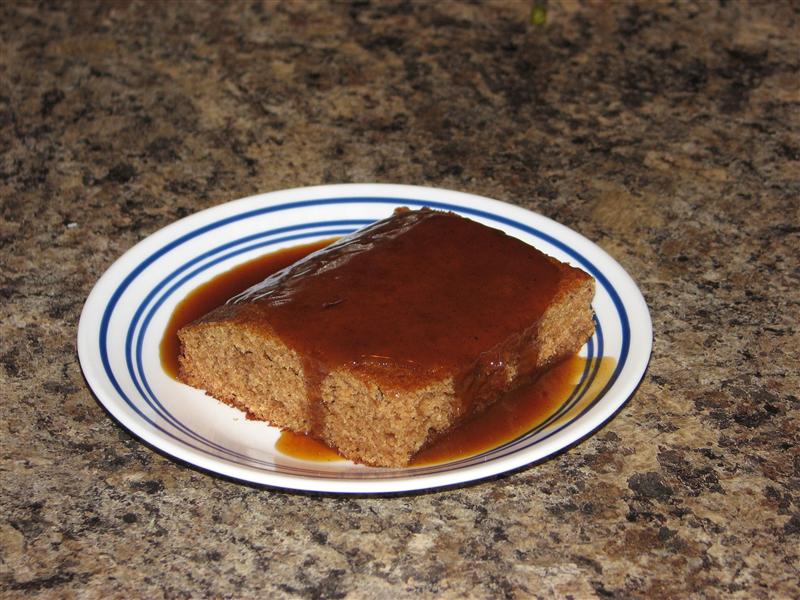 I brought the remainder of the cake into work today, and everyone loved it — the sauce especially got rave reviews. One of my co-workers decided he’d only have a quarter of the piece… then had another quarter… then another one… 😉
