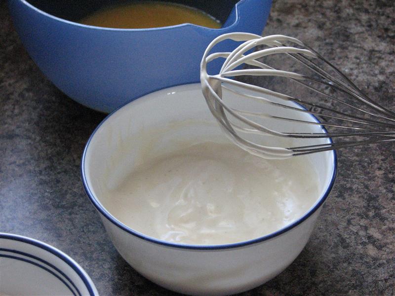 Now, make the génoise part, since that’s another component that has some “wait” time built into it. Heat the eggs and sugar over a double boiler.