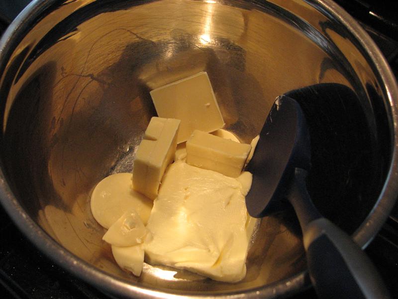 Gradually (I used about 3 additions), beat the custard into the butter and cream cheese (and a half tablespoon of sour cream — wth?).