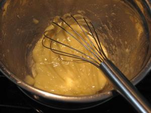 Then whisk in the egg. Discover, like Jenn, that it’s already over 140 degrees, but decide to cook it just a little extra just in case.