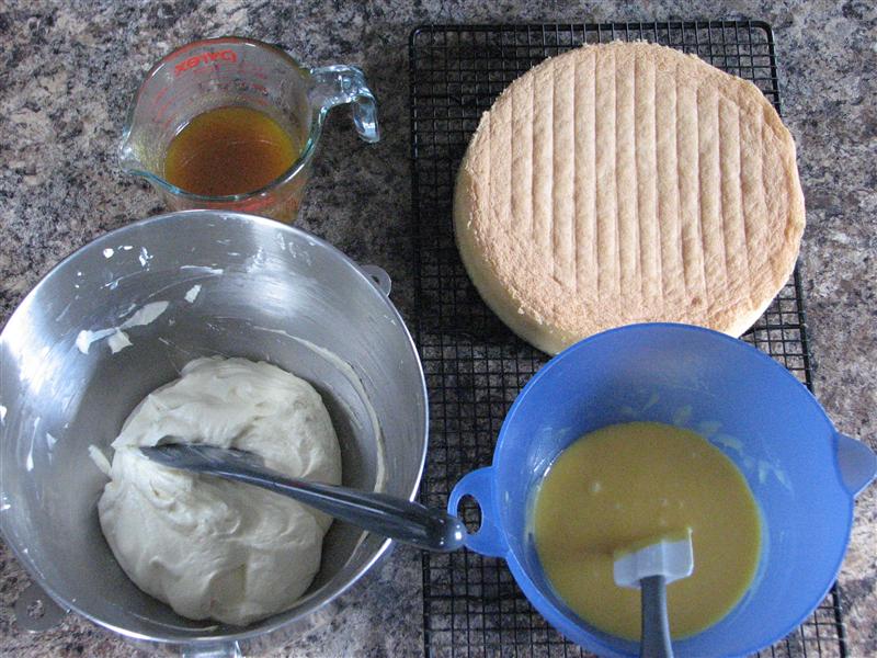 Put the second layer on top of the curd, syruped side down, and syrup the top (which was probably originally the bottom of the cake).