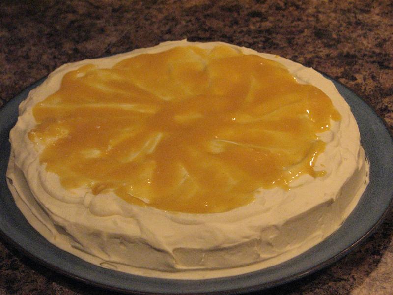Then, stash that in the fridge to firm up a bit, so you can swirl in the remaining passion fruit curd. Or, you can be like me and completely forget about it until it’s just about rock hard, and then when you go to swirl in the curd, it just sits on top like a puddle. Oh well! Hopefully, it will taste good!