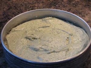 After that’s thoroughly incorporated, spread the (really thick) batter evenly in a prepared pan.