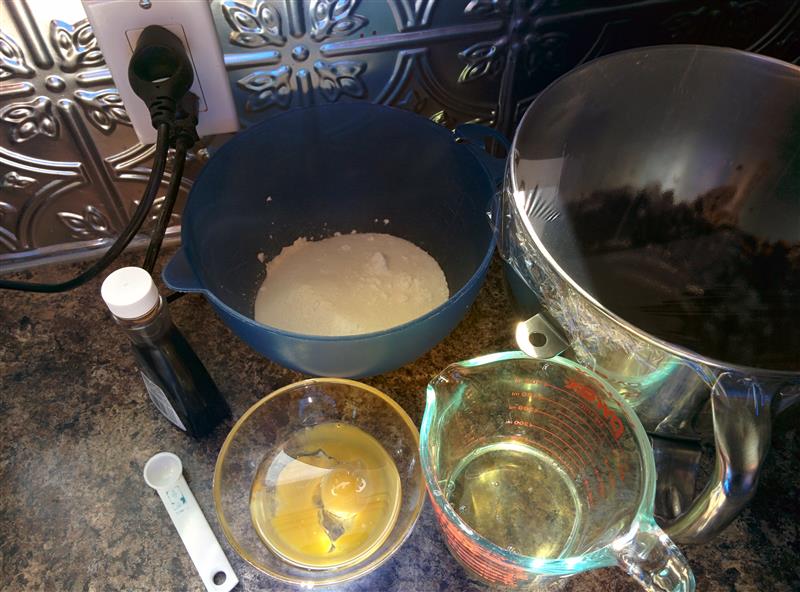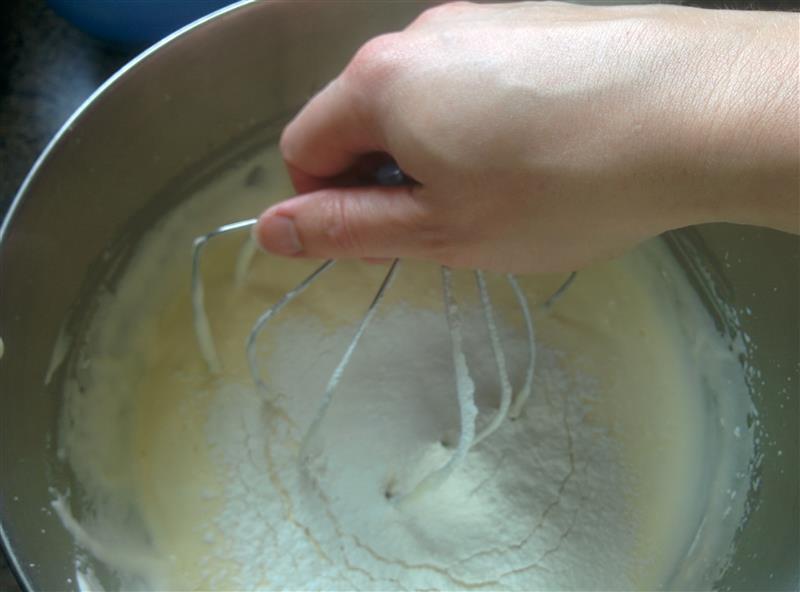 Put the dough in your rising container, and clean the mixer bowl for sponge cake.