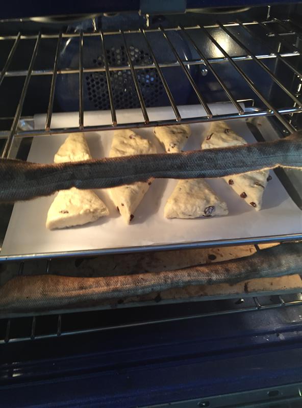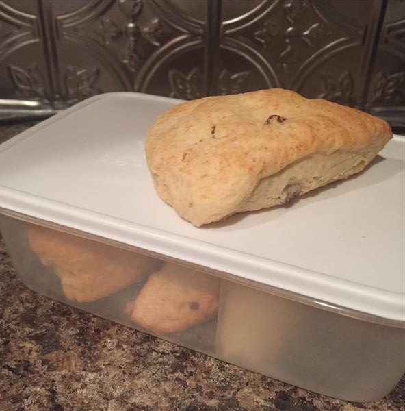 I knew when I started that Jay would hate them, because they contain raisins, but I’m not about to let that stop me from enjoying them. I like these, because they’re even easier than biscuits or traditional scones, because you don’t need to cut in any butter. Less muss, less fuss, and just as good of a finished product, in my opinion. I’ve eaten 3 already this weekend, and I’ll bring the rest in to work tomorrow morning. They’ll make a good breakfast with morning coffee. Oooh… I’m just remembering… I brought some apple butter and grape jelly in for Thursday lunch a while back. I’ll have to remember to go hunt that down from the fridge on my way upstairs tomorrow. That’ll be a good way to kick off what I expect to be an extremely long week at work.