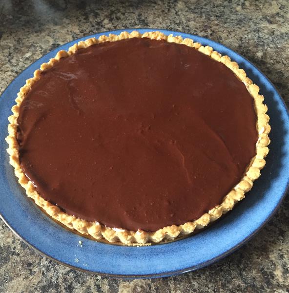 We had some friends over for a games night on Saturday. In the email chain setting up the details, Jay made a comment about getting me to bake something, and suggested that I’d likely take requests. I responded with “No requests! You get what you get, and in this case, you get chocolate hazelnut mousse tart, ’cause that’s what’s on my schedule. Like my peanut butter pie, but hazelnut.” 6 of the 8 of us have had my version of the peanut butter pie from the Pie & Pastry Bible at least twice, so I figured this hazelnut version would likely go over well. I also figured that I had enough hazelnut praline powder from the hazelnut praline cookies, but it turns out I didn’t, and I ended up stretching it with peanut butter, anyway. That decision did not go over poorly.