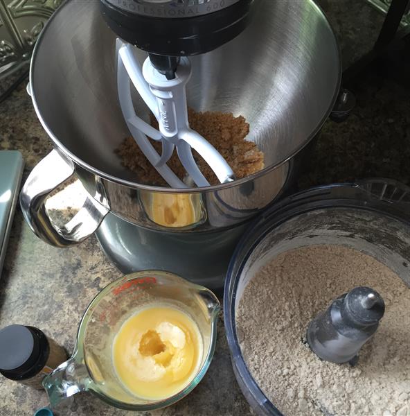 The first place I messed up was that I think I let the food processor go just a bit too long when it came to chopping the pecans “coarsely” as they were mixed into the flour. I ended up with something more like pecan flour than coarsely chopped pecans.