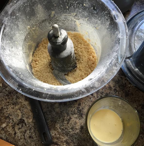 Those of you that halve recipes all the time – is it just me, or is a food processor almost completely useless with tiny quantities, no matter whether you use the small bowl or not? I adore my food processor, but it really didn’t get anywhere with reducing the size of the grains of turbinado sugar, and I had to pretty much mix the clarified butter in by hand. I eventually got things to come together, but I’m wondering if there’s a trick I’m missing.