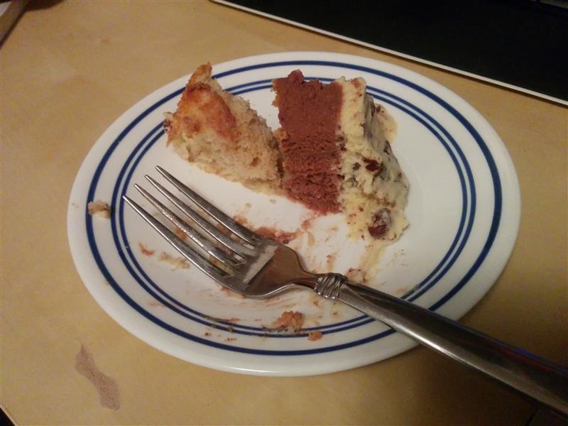 Trying out posting from my phone, tonight, because I don’t think I’ll have enough time in front of a computer tonight to get this posted. This week’s selection from the alpha bakers group is a chocolate cake with a spicy ganache.