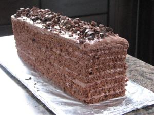 This week is another free choice week, with the Heavenly Cake Bakers group. I’ve been using some of these free choice weeks to catch up with cakes I missed while our kitchen was out of commission. This week is one of those. The chocolate featherbed cake looks really fussy, and not at all like the sort of cake I normally expect to enjoy (not the sort of thing I’d order at a restaurant, for example), but when I looked at the components, and Rose’s description of it, I couldn’t imagine it not being good. And it is. Good, that is. Not not good.